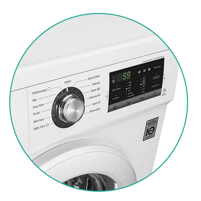ماشین لباسشویی ال جی مدل LG FH2J3QDNP0 یکی از نمونه های بارز این شرکت می باشد که دارای رنگ سفید و طرح و دیزاین شیک است که ظاهر آشپزخانه یتان را به کلی تغییر می دهد و ظرفیت شستشوی این لباسشویی تا ظرفیت 7 کیلو می باشد و مناسب یک خانواده پرجمعیت است که در رده مصرف انرژی A+++ قرار گرفته است و تا میانگین 49 لیتر در هربار شستشو آب مصرف می شود وتمام شستشوی حالات دست را نیز اجرا می کند مانند غلتانیدن وسایدن و پله ای و تاب دادن و آبکشی یعنی همه این مراحل را به درستی رد می کند و دارای موتور گیربکسی اینورتر دایرکت درایو می باشد که در کم صدا بودن لباسشویی تاثیر به سزایی دارد بخصوص در هنگام استراحت و یا مهمانی هایتان هیچ آزار صوتی تولید نمی کند همچنین طول عمر لباسشویی را بالا می برد و باعث می شود محصول تا 10 سال بیشتر عمر کند.