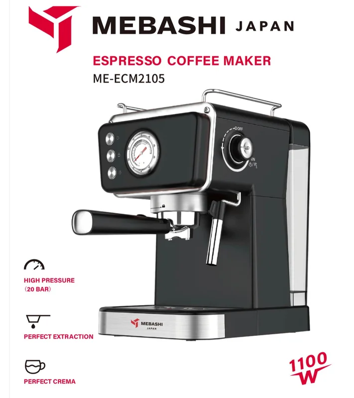 دستگاه اسپرسوساز خانگی مباشی مدل ۲۱۰۵ دارای توان مصرفی ۱۱۰۰ وات و قدرت فشار ۲۰ بار است که قادر است یک فنجان اسپرسو با کرمای عالی و خوش عطر و طعم تحویل دهد.