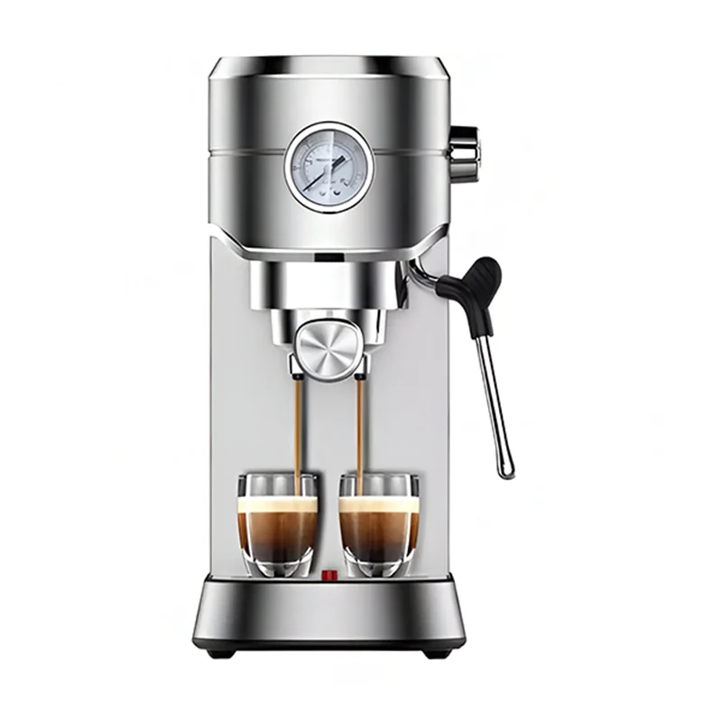 این دستگاه یک کنترل پنل مکانیکی با 4 دکمه و یک پیچ تنظیم میزان بخار دارد که به شما کمک میکند تا علاوه بر اسپرسو بتوانید نوشیدنیهایی همچون کافه لاته، کافه ماکیتو، آب جوش، شیر گرم، موکا ، کاپوچینو و… را به راحتی در منزل، سوپر مارکت، کافی شاپ و… تهیه کنید و از نوشیدن آنها لذت ببرید. این محصول به دلیل دارا بودن نازل بخار پر قدرت و یکپارچه یک دستگاه نیمه صنعتی به حساب میآید. همچنین قابل به ذکر است که این محصول با دو نازل تعبیه شده خود، امکان آماده سازی همزمان 2 فنجان قهوه را دارد و برای تهیه اسپرسو کافی است از پودر قهوه بهره ببرید.