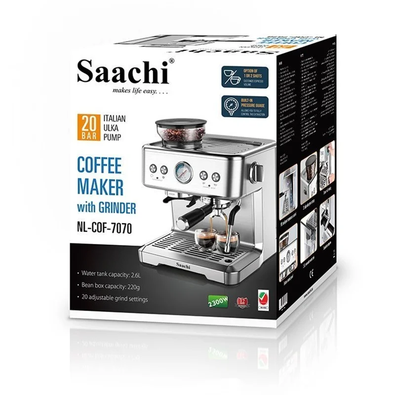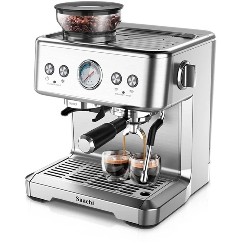 – قابلیت آسیاب کردن، یک فنجان اسپرسو، دو فنجان اسپرسو، آب داغ، فوم شیر