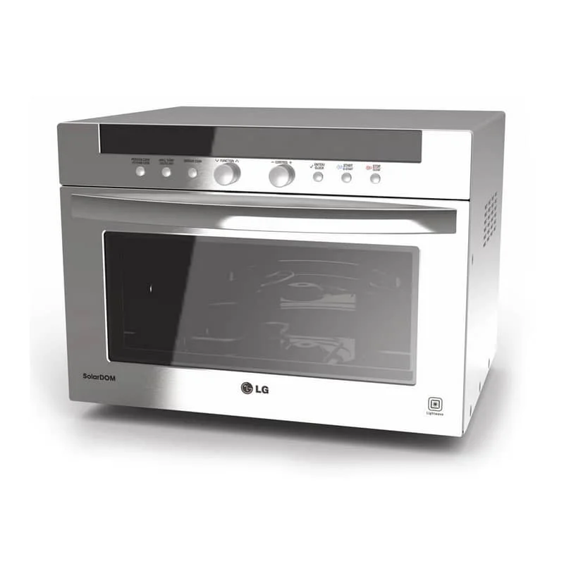 علاوه بر این در قسمت پایینی یعنی در کف محفظه پخت یک سیستم مگاهیتر تعبیه شده است که امواج گرمایشی و نورانی را از پایین به مواد غذایی داخل سینی می تاباند . سولاردام بر خلاف دستگاه های مشابه مانند مایکروویو و آوان توستر که دارای محفظه ای چهارگوش و مربعی شکل هستند با محفظه پخت مدور و استوانه ای شکل طراحی شده است که باعث میشود تا امواج گرمایی را بهتر بر روی مواد غذایی منعکس نماید.سولاردام ال جی مدل ۳۸۸۴ علاوه بر توانایی انجام تمام عملکرد های یک مایکروویو را دارد ، امکان قابلیت گریل کردن مواد غذایی را هم به کاربر میدهد .با استفاده از دکمه های مایکروویو غذاها را به خوبی بپزید و با قابلیت گریل کردن غذا های پخته شده را برشته کنید . این مدل سولاردام ال جی به سه سطح گریل کردن مجهز شده است گریل(۱)با توان ۱۶۰۰ وات در زمان کوتاه فقط روی غذاهای مانند ماهی , مرغ , کیک , پیتزا و … را سریعا برشته میکند . گریل (۲) با توان ۱۱۰۰ وات فقط روی غذاهای که به برشته کردن نیاز دارند را در مدت زمان طولانی تر آماده میکند . گریل(۳) با توان ۰۰ وات و زمان مناسب با همان حرارت فقط توانایی برشته کردن زیر غذاهایی مانند ته دیگ , ته چین ,زیر کیک و … را دارد .