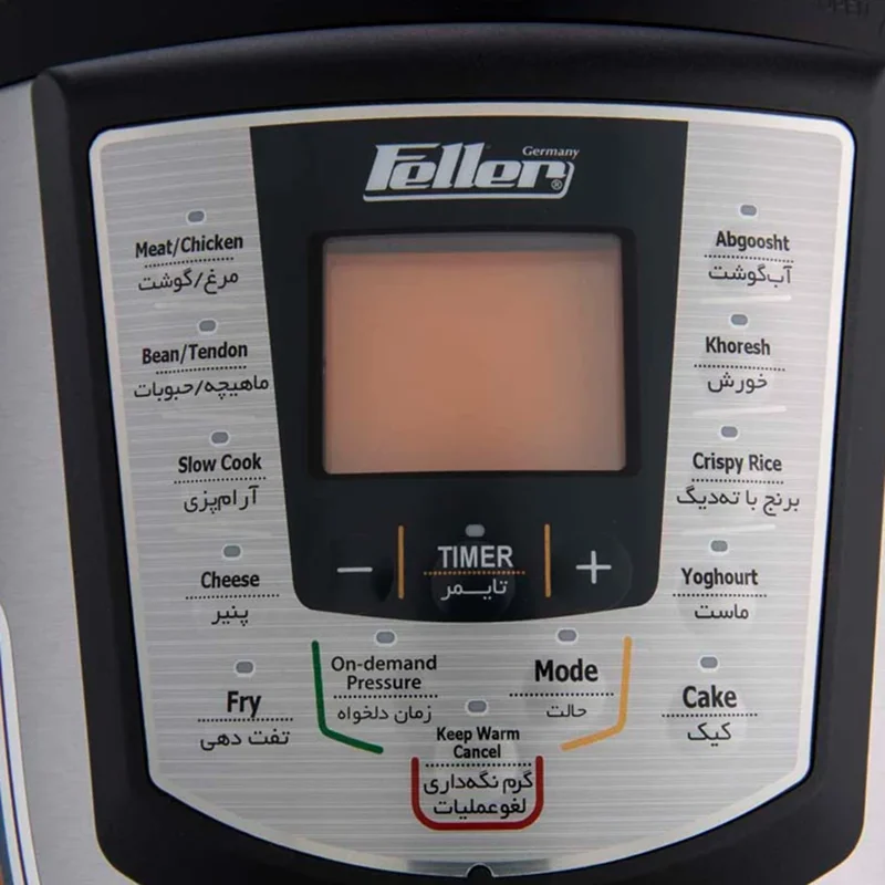 زودپز برقی «فلر» مدل «PC165» دستگاه همهکاره برای پخت غذا است. کافی است مواد غذایی را داخل آن قرار دهید تنظیمات را انجام داده و کمی صبر کنید تا غذا آماده شود. زودپز برقی فلر PC165 دارای تنظیمات گستردهای برای پخت انواع غذا در حالت بهینه مصرف است. با تنظیم میزان فشار در سه حالت کم، استاندارد، زیاد میتوان مقدار فشار داخل دستگاه را تنظیم کرد که با این عملکرد مدتزمان پخت هم تحت کنترل درمیآید. امکان استفاده از تایمر هم میتواند در این امر دخیل شود. تنظیمات پیشفرض برای پخت برنج با تهدیگ، تهیه ماست، پنیر، آبگوشت، انواع خورش، سوپ، حلیم، مرغ و گوشت، ماهیچه، حبوبات تنها با یک دکمه قابل انتخاب است. قابلیت پخت کیک و سرخ کردن هم در این دستگاه وجود دارد. این وسیله گزینهای بسیار مناسب برای تمام خانوادهها و حتی افراد تنها است که بهراحتی در وقت صرفهجویی میکند و نتیجه مطلوبی ایجاد میکند. امکان بسته شدن در زودپز بهراحتی انجام میشود و مکانیسم بست و باز آن طوری طراحیشده است که حتی با یک دست هم میتوان اقدام به باز و بست آن کرد. سوپاپ اطمینان و مکانیسمهای ایمنی این دستگاه، یک آشپزی ایمن را به ارمغان میآورد. بدنه این دستگاه از استیل ضدزنگ بوده و ظرف پخت این دستگاه روکش نچسب دارد و نگرانی از بابت چسبیدن مواد غذایی وجود ندارد. ظرفیت بالای این دستگاه امکان پخت برای خانوادههای پرجمعیت را هم فراهم میآورد. مصرف برق این دستگاه پایین است تا جایی که در رده مصرف انرژی B تا A قرار میگیرد. صفحه نمایشگر این زودپز اعداد و تنظیمات را باکیفیت و وضوح نمایش میدهد.