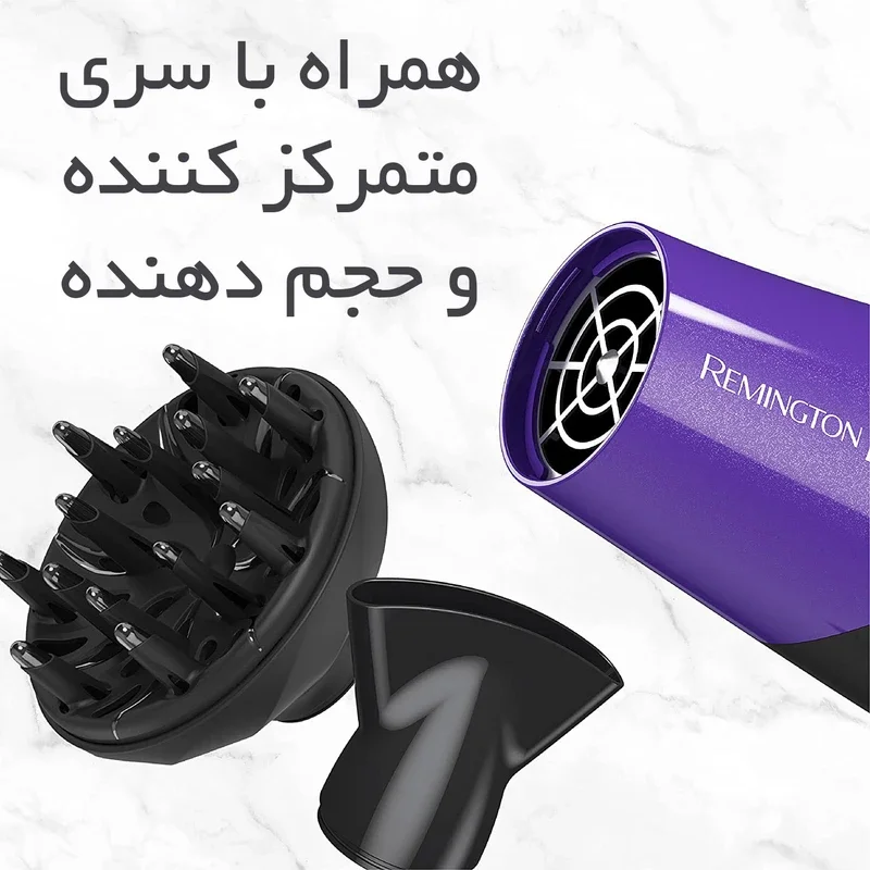 مدل D3190 سشوار برند شناخته شده رمیینگتون موتور مناسب برای مصارف نیمه حرفه ای خانگی با قدرت 2200 وات را در اختیار دارد.جنس المنت سرامیکی ، ظاهر زیبا و البته استفاده از تکنولوژی تولید یون، micro-conditioners و Advanced Coating Technology باعث شده تا 3 برابر اسیب به موها کاهش پیدا کند.سرعت باد سشوار در دو حالت و دمای باد در سه حالت قابلتنظیم است رویهمرفته شش حالت مختلف سرعت و حرارت وجود دارد که با توجه به جنس مو و استفادهی موردنظر میتوان یکی از آنها را انتخاب کرد.علاوه بر متمرکزکنندهی باد، یک دیسپانسر برای حالتدادن و حجمدادن موها همراه سشوار ارائه شده است.