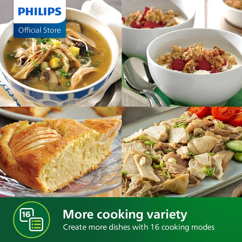 مولتی کوکر ۲۲۳۷ فیلیپس با توان مصرفی ۱۳۰۰ وات و گنجایش ۶ لیتر، همه انواع غذاها را در کمترین زمان ممکن برای شما آماده می کند. این دستگاه دارای عملکردهای مختلفی از جمله آرام پز، بخارپز، پلوپز و زودپز است که با استفاده از تایمر، میتوانید زمان و دمای غذاهای مختلف را تنظیم کنید. مولتی کوکر مدل HD2237 دارای ۴ عملکرد اصلی پخت در قالب ۱۴ برنامه خودکار است که میتواند تمام نیازهای مختلف در اشپزی را برطرف کند. علاوه بر این، مولتی کوکر فیلیپس دارای تنظیمات دستی نیز میباشد.