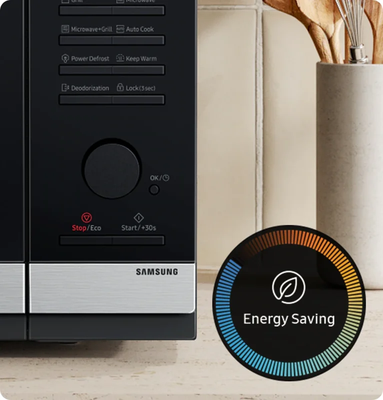 لوازم خانگی که هر روز روشن می مانند بدون اینکه متوجه شوید مقدار مشخصی از برق را هدر می دهند. با این حال، حالت آماده به کار می تواند این مصرف انرژی غیر ضروری* را کاهش دهد. وقتی در حال آشپزی نیستید، نمایشگر مایکروویو را خاموش می کند و برای آماده نگه داشتن آن از حداقل قدرت استفاده می کند.