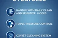 برای تغییر مدل پاشیدن آب، در قسمت پایین هر برس آبفشان، قطعهای وجود دارد که اگر به سمت بالا هل داده شود، پاشش به صورت افقی و اگر به سمت پایین باشد، پاشیدن آب به صورت پاششی و دورانی خواهد بود. از جمله مزایای این مسواک، وجود سنسور فشار اتوماتیک است که وقتی مصرف کننده بیش از حد نیاز به دندان فشار وارد کند، با هشدار مواجه میشود. همچنین تایمر دستگاه هر 30 ثانیه از طریق ویبره، اتمام مسواکزدن 4/1 فک را اعلام میکند تا تمام قسمتهای دندان در زمانهای مساوی مسواک زده شود. این کیت دارای قابلیت اتصال به دیوار سرویس بهداشتی است و ابزارهای لازم آن داخل بستهبندی محصول قرار گرفتهاند. به کمک کیت مسواک برقی اکسیجت مراقبتی تمام و کمال از دندانها انجام میشود و برای افرادی که میخواهند بدون پرداخت هزینه گزاف و صرف وقت در دندانپزشکی، پلاک و جرم دندانی را کاهش دهند، انتخابی بی نظیر و به صرفه است. شرکت آلمانی اورال-بی با توجه به نیاز مصرفکنندگان، محصولات متنوع و باکیفیتی تولید کرده است.