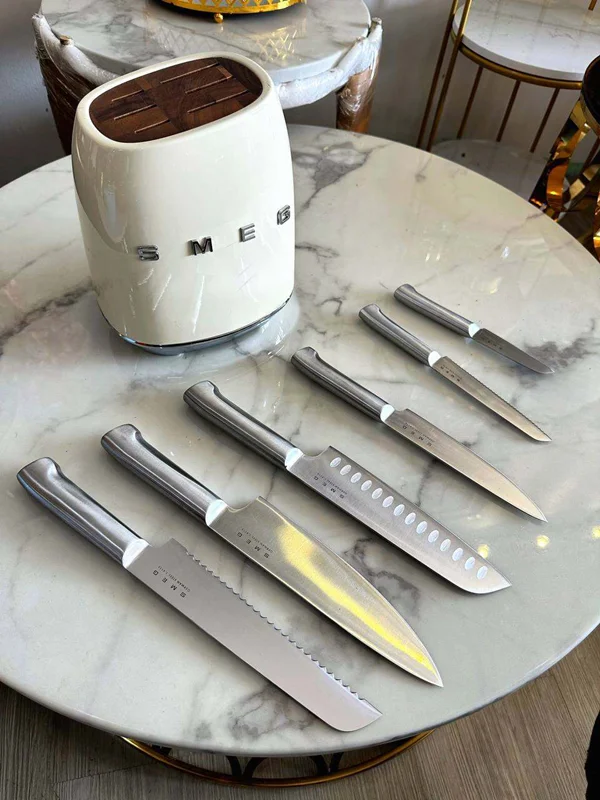 ارتقاء آشپزخانهتان با ست چاقوی اسمگ 7 پارچه به رنگهای کرم و مشکی! با طراحی شیک و کیفیت بینظیر، این چاقوها تجربهای حرفهای و لذتبخش از آشپزی را برای شما به ارمغان میآورند. ست چاقوی اسمگ نهتنها ابزاری کارآمد، بلکه زیبایی خاصی به دکور آشپزخانهتان میبخشد. همین حالا خرید کنید و تفاوت را احساس کنید!