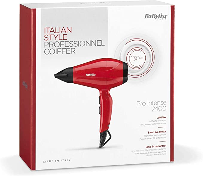سشوار حرفه ای بابیلیس مدل 6615E○ ساخت ایتالیا○ قدرت 2400 وات○ موتور AC○ سرعت باد 130 کیلومتر در ساعت○ آیونیک○ طول سیم 2.7 متر