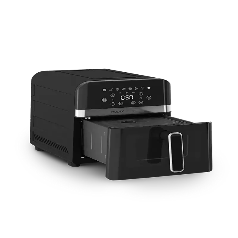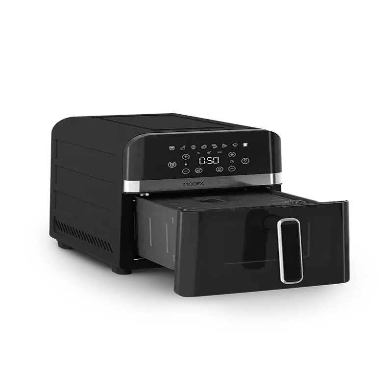 سرخ کن بدون روغن مودکس مدل AF9200 با ظرفیت ۹ لیتر و توان ۲۰۰۰ وات که دارای المنت بالا و پایین است.قابلیت پخت ۳ بعدی دارد. دارای ۸ برنامه پیش تنظیم شده می باشد. بدنه بیرونی از جنس فلز و همچنین بدنه داخلی نیز فلزی است. فن بسیار قوی برای پخت بهترغذا از ویژگی های این سرخ کن است. دارای پنجره دید و لامپ داخلی است. قابلیت تنظیم دما از ۸۰ تا ۲۰۰ درجه سانتیگراد و تنظیم زمان از یک تا ۶۰ دقیقه را دارد. دارای یک سبد استیل با دسته برای پخت سه بعدی و دارای سینی توری از جنس تفلون است. صفحه نمایش آن تمام لمسی است.