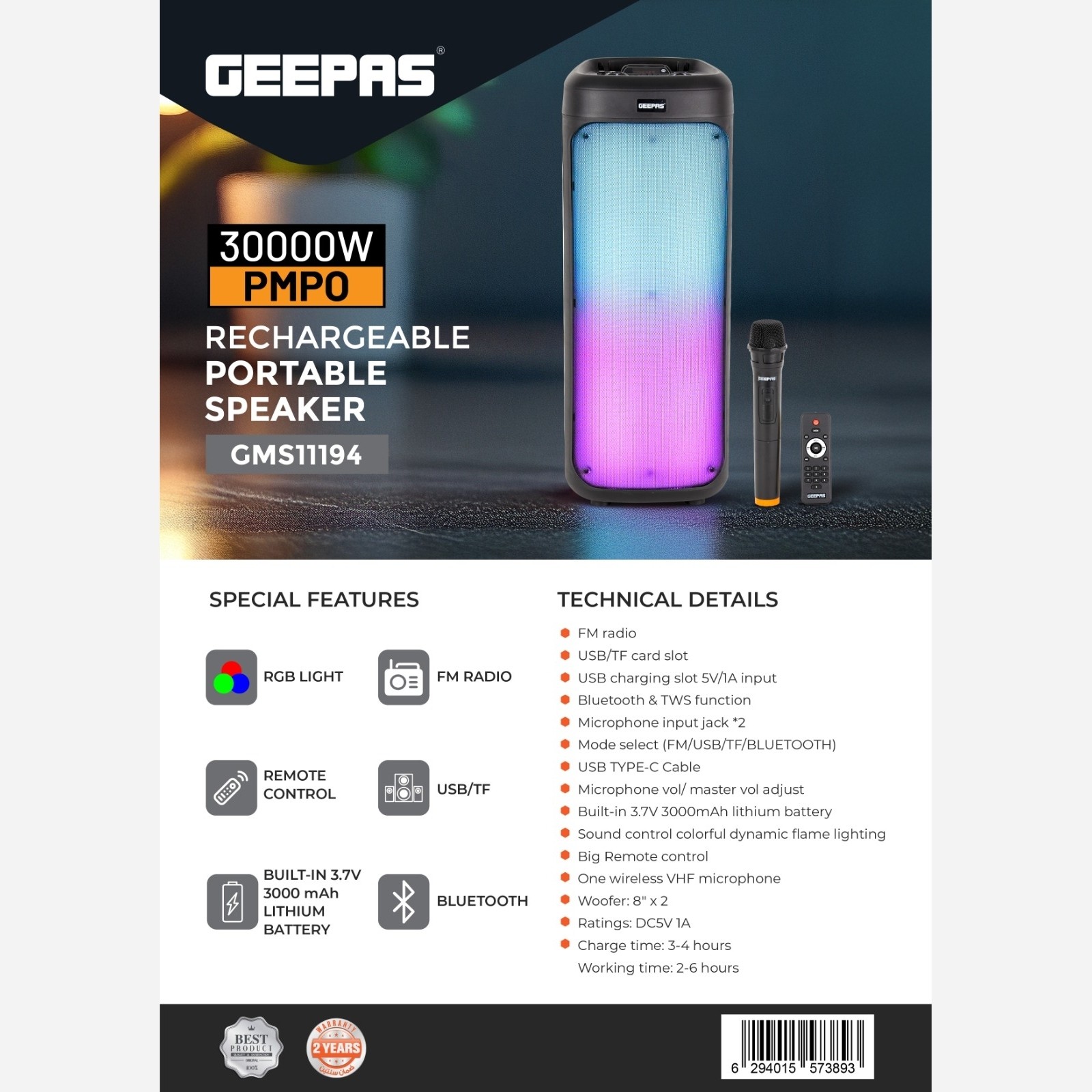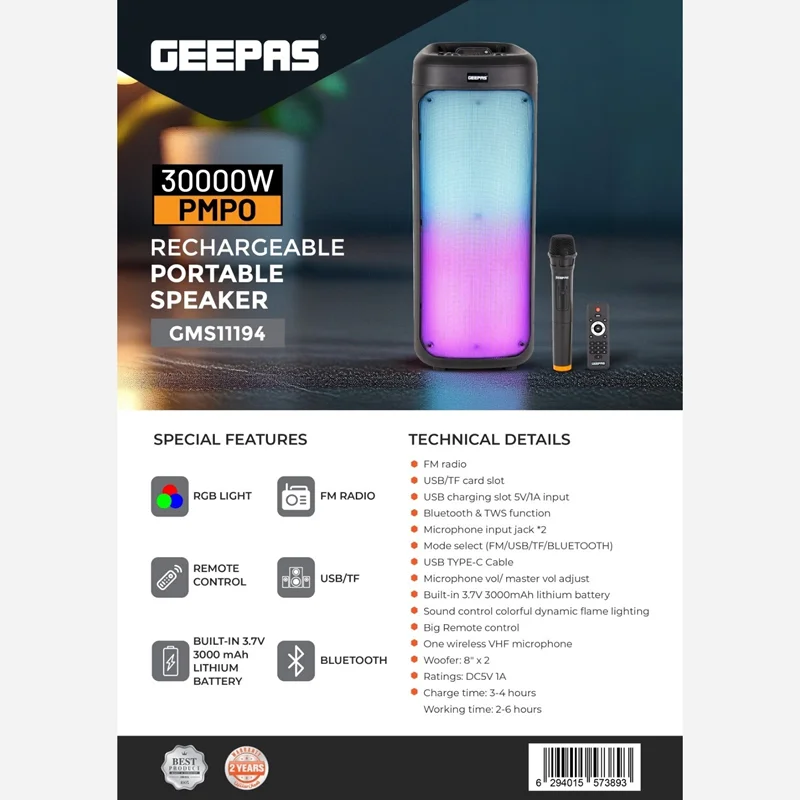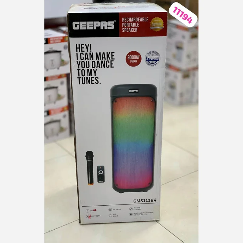 اسپیکر جیپاس مدل 11194 با قابلیت برق و شارژ دارای ریموت کنترل و میکروفن و رقص نور