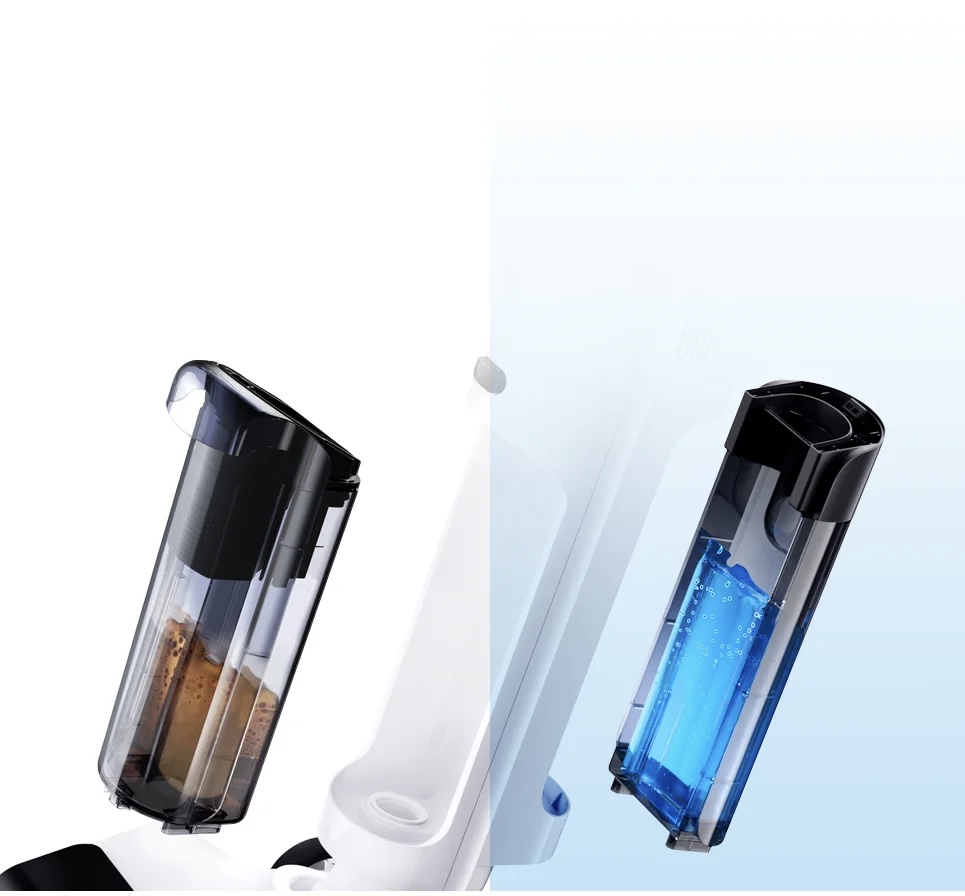 این دستگاه مجهز به مخزن آب تمیز 780 میلیلیتری و مخزن آب کثیف 550 میلیلیتری است که به شما امکان میدهد مدت زمان بیشتری بدون نیاز به تخلیه یا پر کردن مخزن به تمیزکاری بپردازید. این ویژگی باعث افزایش کارایی و سرعت تمی