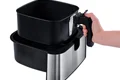 برند Sharp یک شرکت ژاپنی است که در زمینه تولید الکترونیک و لوازم خانگی فعالیت میکند. این برند معروف به دلیل تولید محصولات با کیفیت بالا و طراحی زیباست و در بازار جهانی شناخته شده است. محصولات شارپ شامل تلویزیونها، لپتاپها، دوربینهای دیجیتال، محصولات آشپزخانه، ماشینهای اداری و دیگر لوازم الکترونیکی میشود. برند Sharp از سال 1912 فعالیت خود را آغاز کرده و در حال حاضر به عنوان یکی از برندهای معتبر در صنعت الکترونیک شناخته میشود. این برند برای تولید محصولات خود از فناوریهای نوین و روشهای پیشرفته تولید استفاده میکند و تمرکز آن بر روی تحقیق و توسعه محصولات جدید است. سرخ کن بدون روغن یا Air fryer، یک دستگاه الکترونیکی است که با استفاده از فناوری هوای گرم کننده، بدون نیاز به روغن، غذاها را سرخ و پخت میکند. این دستگاه دارای یک محفظه بزرگ است که شامل سبد سرخ کنی میشود. غذاهای مورد نظر درون سبد قرار گرفته و به کمک هوای گرم، سرخ و پخت میشوند. در واقع، در سرخ کردن با روغن، غذا در روغن حل شده و در دمای بالا سرخ میشود، در حالی که در سرخ کن بدون روغن، با ایجاد جریان هوای گرم، هوا به طور یکنواخت در اطراف غذا میگردد و حرارت مورد نیاز برای پخت و سرخ شدن غذا را فراهم میکند. به همین دلیل، در سرخ کن بدون روغن، میزان چربی مصرفی در غذاها کاهش مییابد که به سلامتی بیشتری کمک میکند.