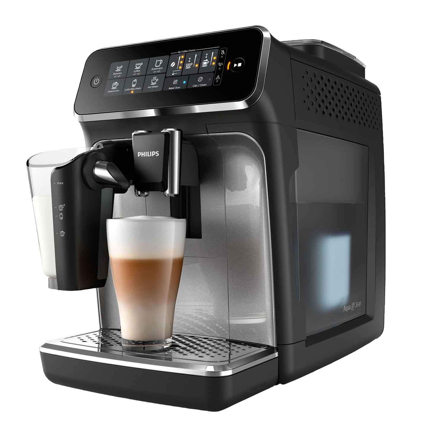 دستگاه اسپرسوساز اتوماتیک فیلیپس مدل EP3246 دستگاهی بسیار با کیفیت و حرفه ای از شرکت فیلیپس است که تمامی نیازهای شما را برای انجام تمامی مراحل تهیه نوشیدنی مورد نظر برطرف می کند به طوری که این محصول دارای 3 حالت دمای مختلف می باشد که متناسب با سلیقه خود می توانید یکی از آنها را انتخاب کرده و در عرض 15 ثانیه به نوشیدنی دلخواه خود دست یابید. این دستگاه با فشار بخار 15 بار و توان مصرفی 1500 وات یکی از بهترین و با کیفیت ترین اسپرسو ساز های موجود در بازار بوده و با عملکرد ها و قابلیت های گوناگونی طرفداران بسیاری دارد!اسپرسو ساز EP3246 دارای بدنه ای از جنس پلاستیک مقاوم میباشد که به رنگ مشکی تولید شده است. این محصول دارای مخازن شیر، آب و قهوه بوده و هر یک از آنها به ترتیب از ظرفیت های 0.26 لیتر، 1.8 لیتر و 275 گرم برخوردار می باشند. همچنین این اسپرسو ساز از 1 عدد نازل بخار و 2 عدد نازل قهوه نیز بهره مند شده است.