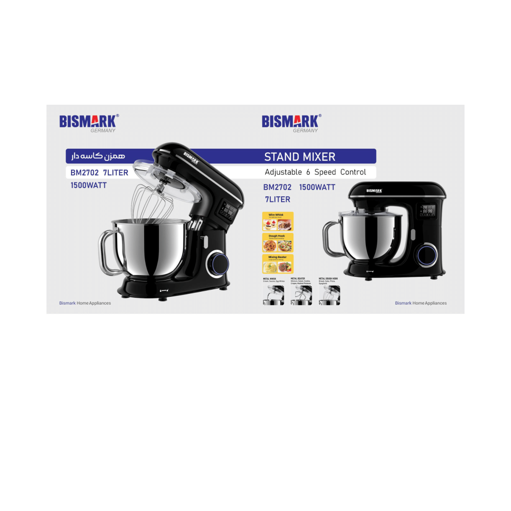 همزن کاسه دار حرفه ای 7 لیتری بیسمارک مدل BM2702